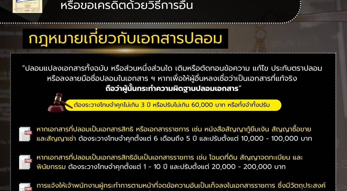 📢สำนักงานตำรวจแห่งชาติเตือนการใช้เล่มทะเบียนรถปลอม หรือโฉนดที่ดินปลอม มาใช้เป็นหลักประกันการให้กู้ยืมเงิน มีโทษตามกฎหมายอาญา จำคุกสูงสุด 10 ปี ปรับสูงสุด 200,000 บาท