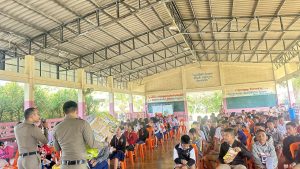 สภ.โสกก่าม นำโดย พ.ต.ท.ปฏิวัติ ชุมแวงวาปี สว.สภ.โสกก่าม พร้อมเจ้าหน้าที่จราจรพร้อม ครูแดร์ ร่วมพิธีเปิดและอบรมให้ความรู้ในโครงการสถานศึกษาสีขาว ปลอดยาเสพติด อบายมุขและปลอดภัยใส่ใจจราจรที่ โรงเรียนบ้านดอนเสียด ต.บ้านต้อง อ.เซกา จว.บึงกาฬ ได้รับความร่วมมือจากคณะครูและนักเรียนเป็นอย่างดี