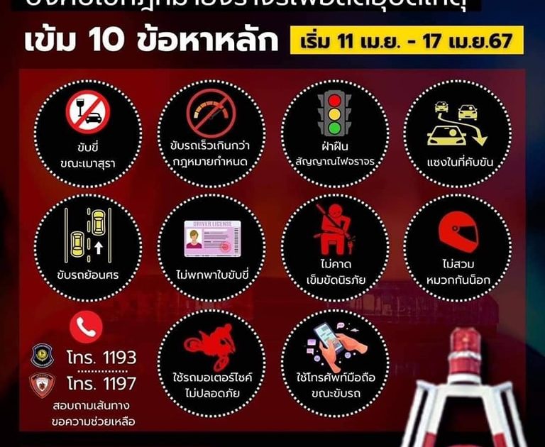 7 วัน คุมเข้ม บังคับใช้กฎหมายจราจรเพื่อลดอุบัติเหตุ 10 ข้อหาหลัก