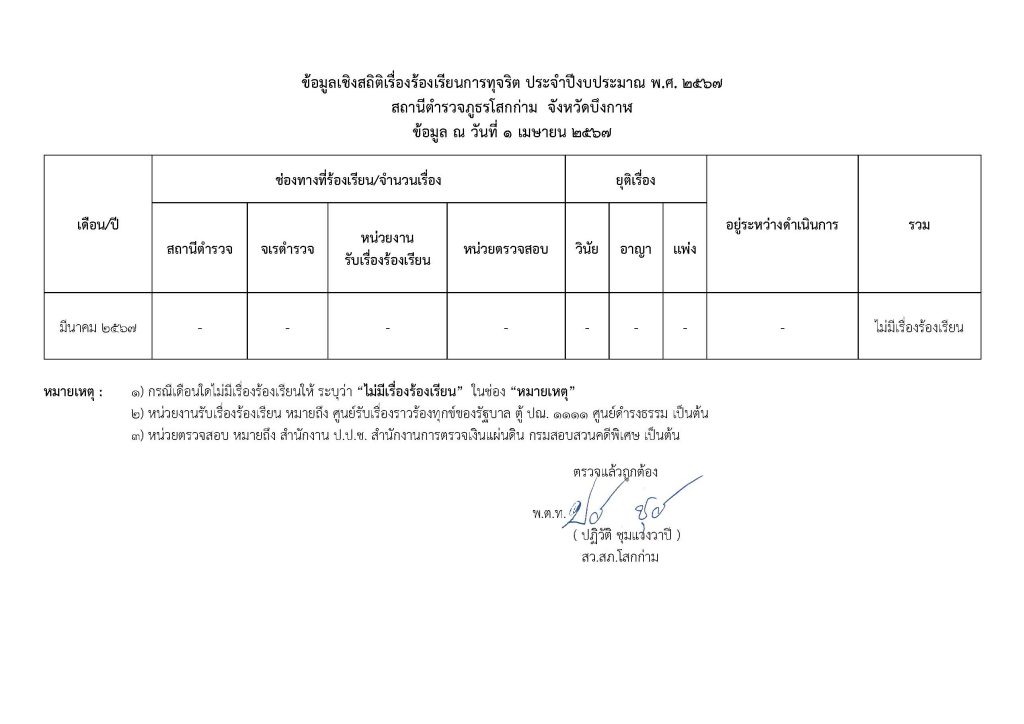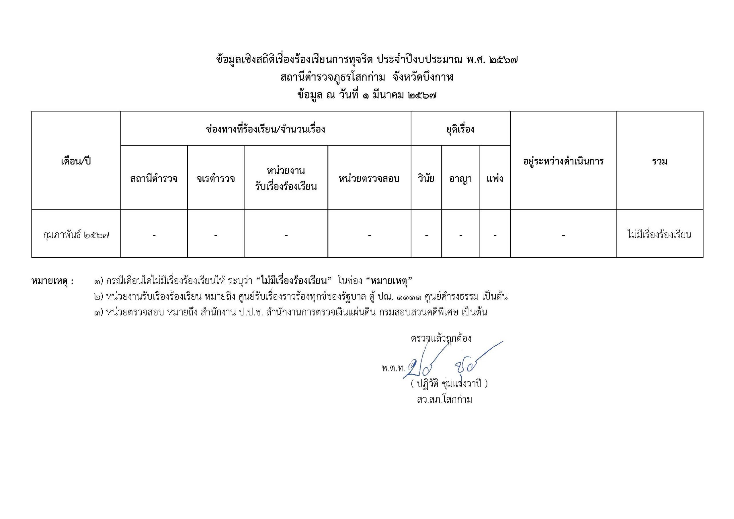 และข้อมูลเชิงสถิติเรื่องร้องเรียนการทุจริต