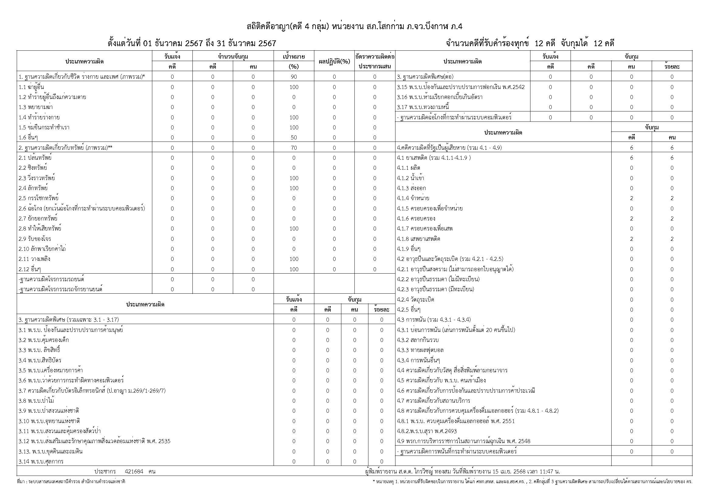 ข้อมูลผลการดำเนินงานในเชิงสถิติด้านคดีอาญา 4 กลุ่ม
