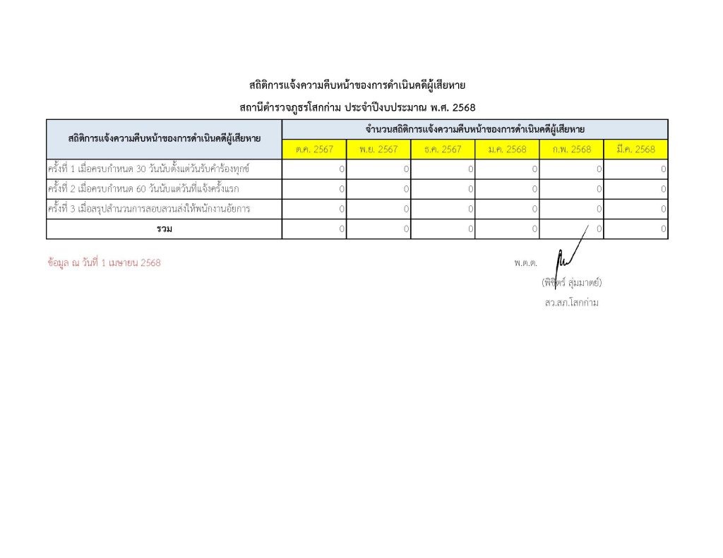 สถิติการแจ้งความคืบหน้าของการดำเนินคดีผู้เสียหาย