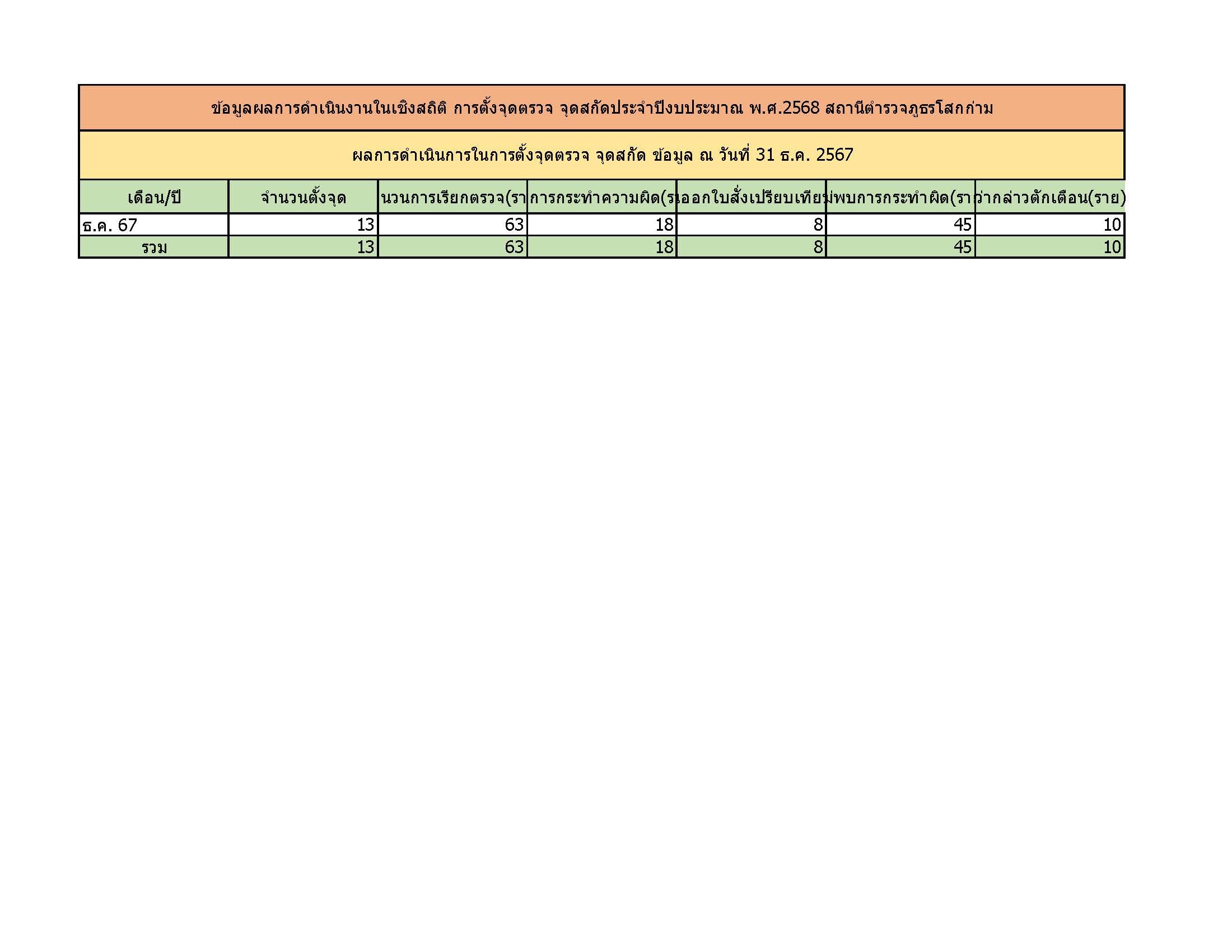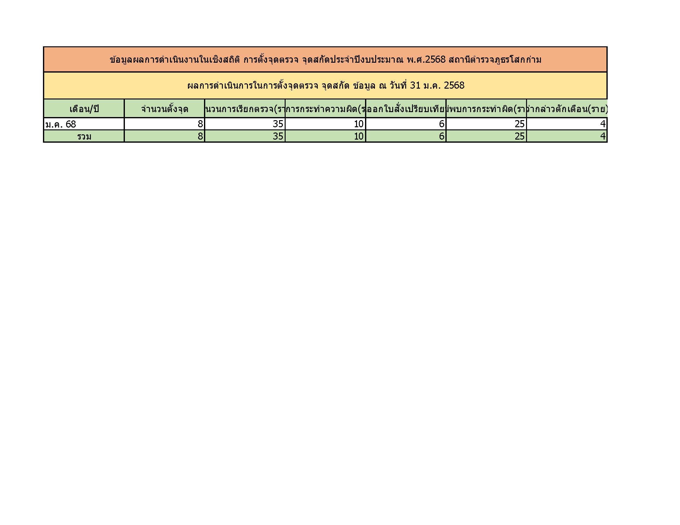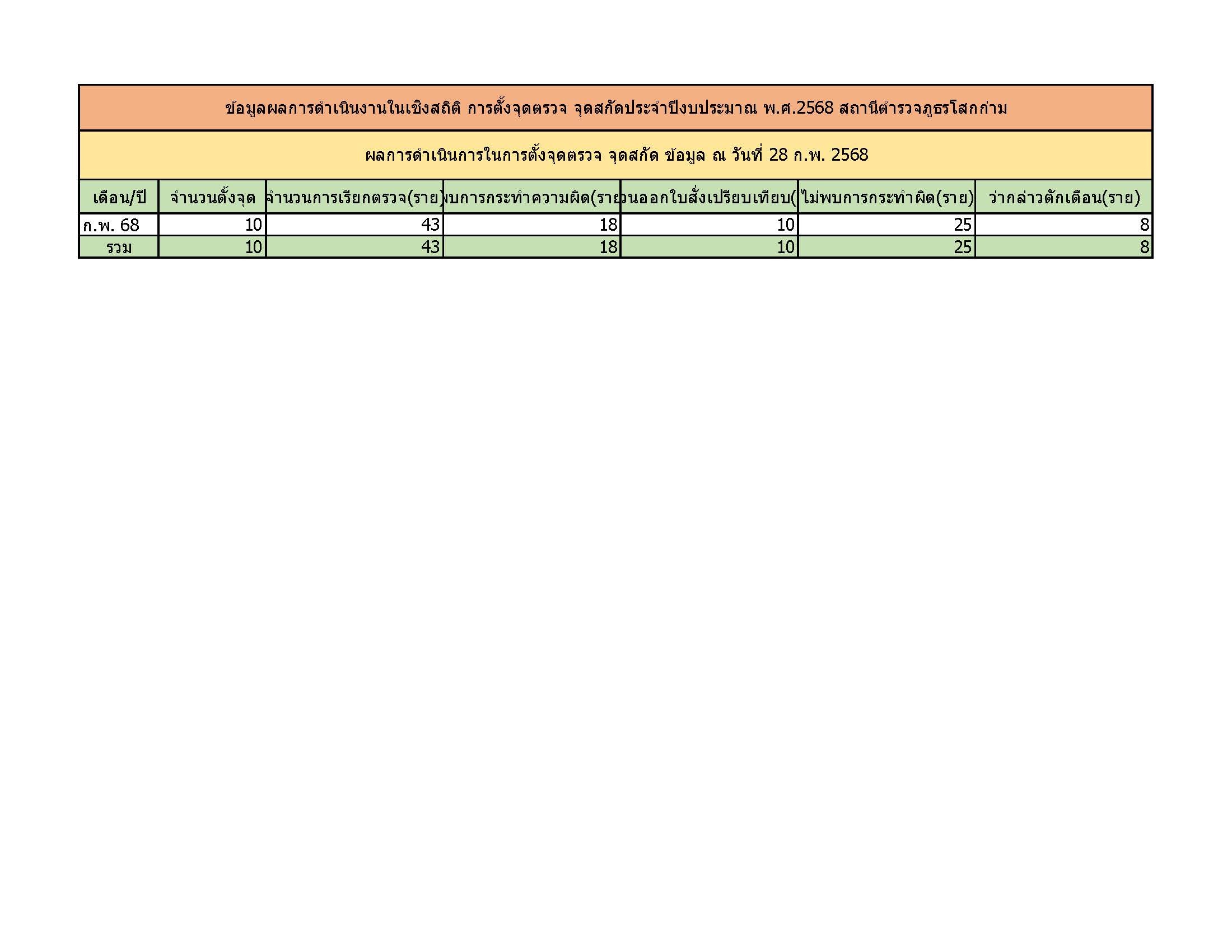 ข้อมูลผลการดำเนินงานในเชิงสถิติ การตั้งจุดตรวจ จุดสกัด