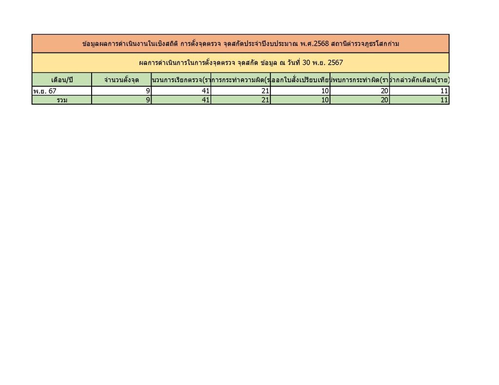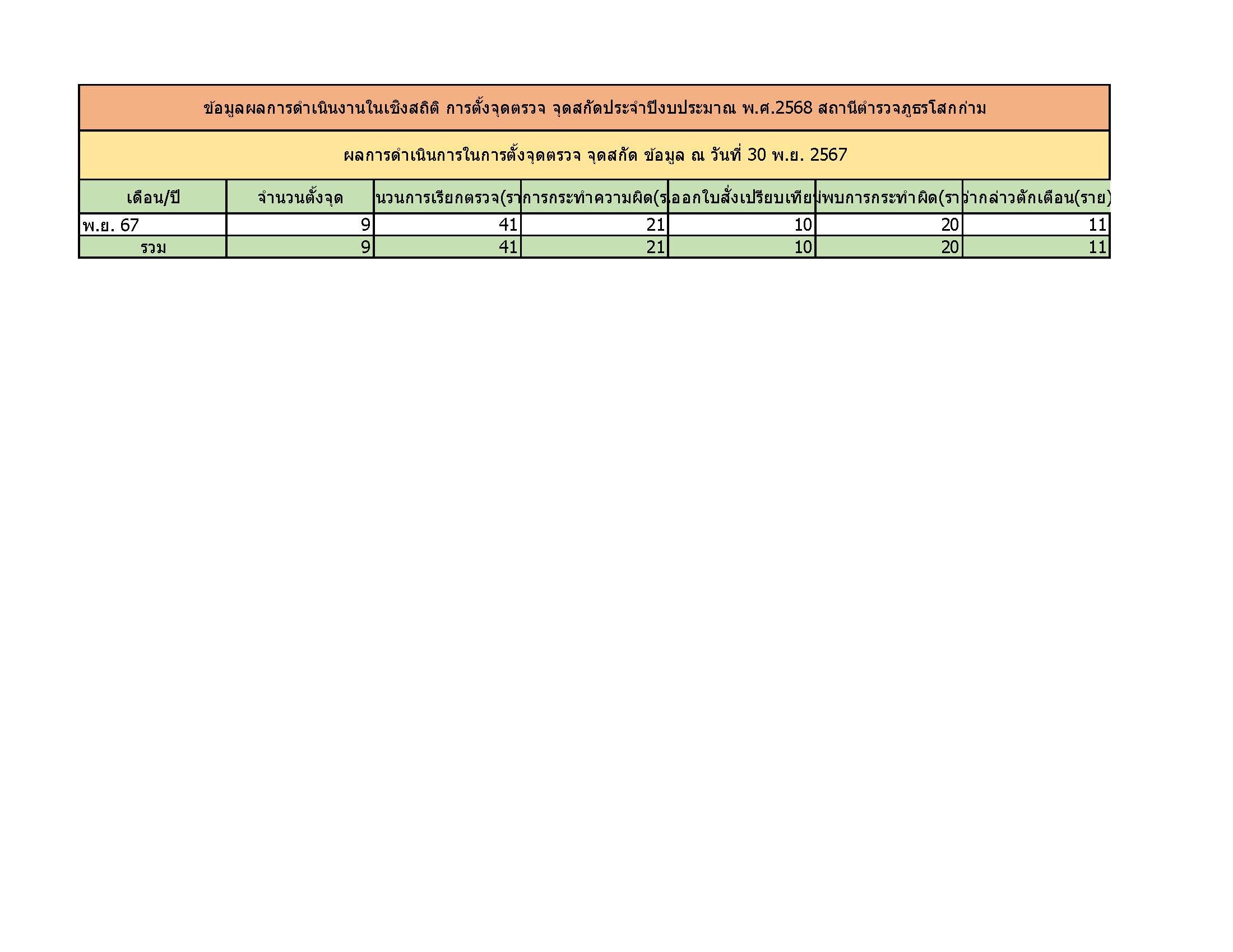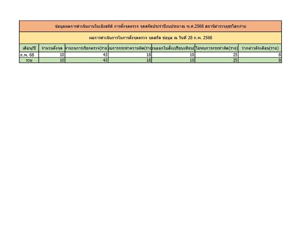 ข้อมูลผลการดำเนินงานในเชิงสถิติ การตั้งจุดตรวจ จุดสกัด