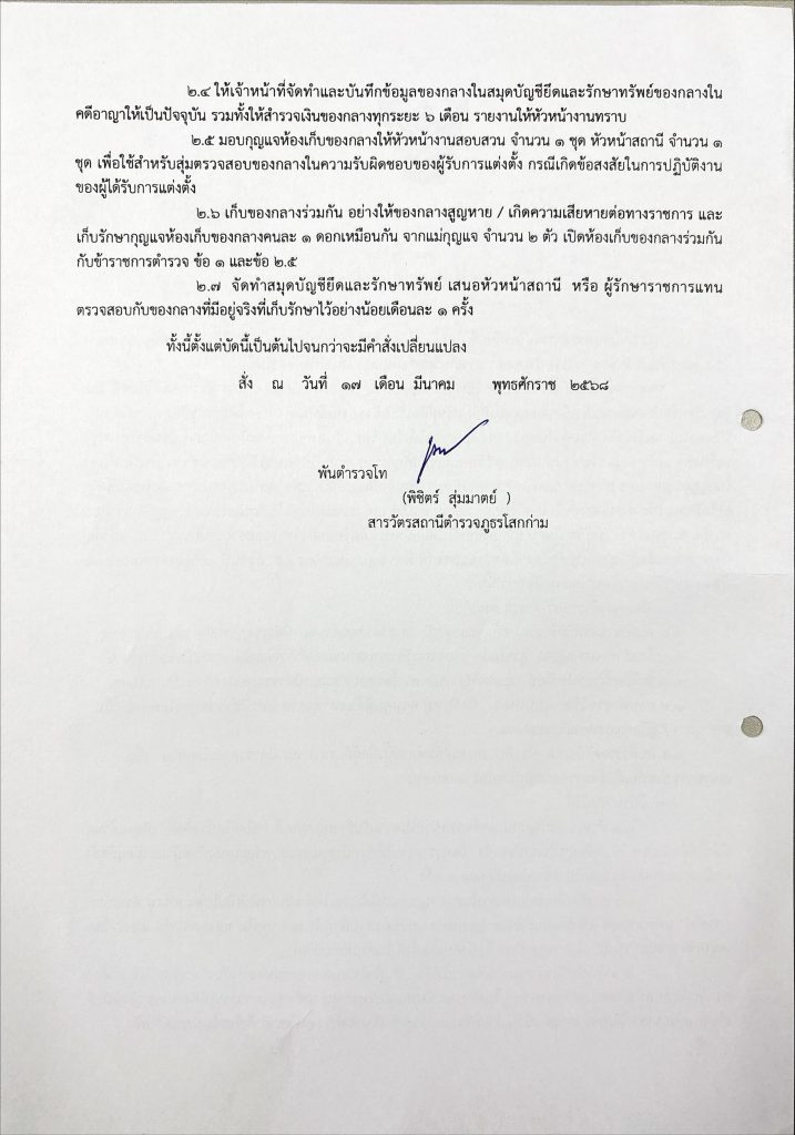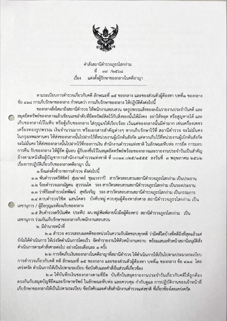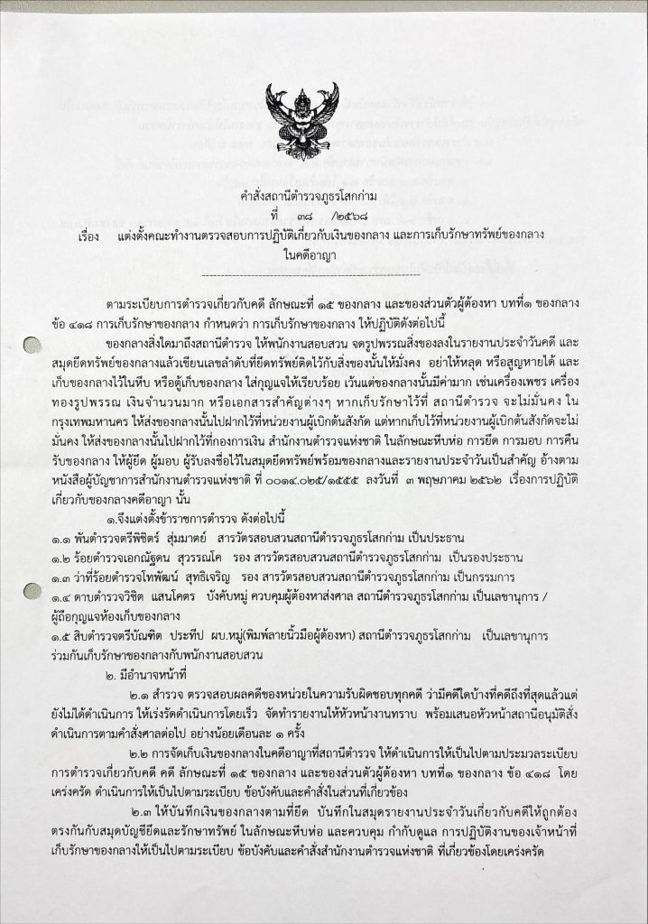 คำสั่งแต่งตั้งคณะทำงานตรวจสอบการปฏิบัติเกี่ยวกับของกลางฯ